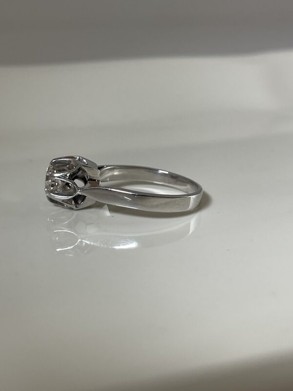 Sortija tipo solitario realizada en oro blanco 18k con un diamante central talla brillante montado en garras.